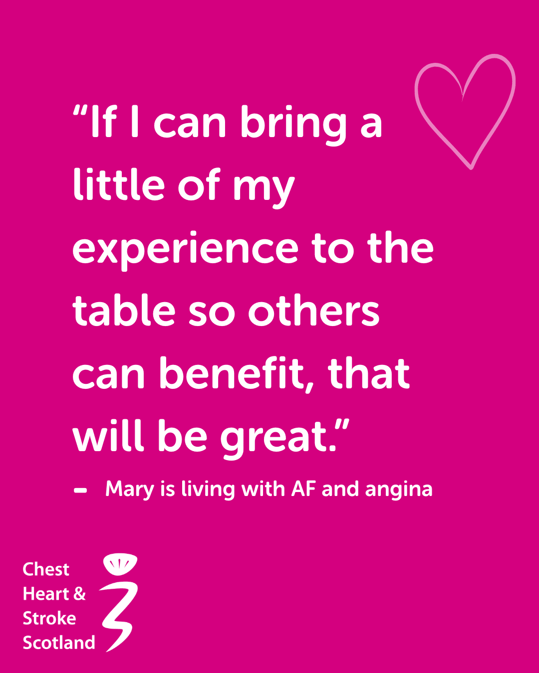 We are Scotland’s largest health charity working to help people with chest, heart and stroke conditions live life to the full.